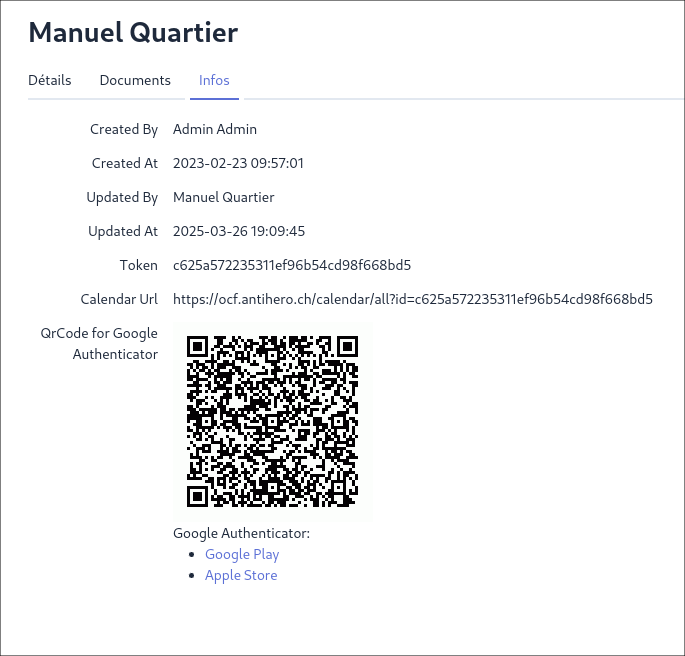 - Depuis l'application Google Authenticator de votre smartphone, ajouter et scanner le code QR présent sur votre page.